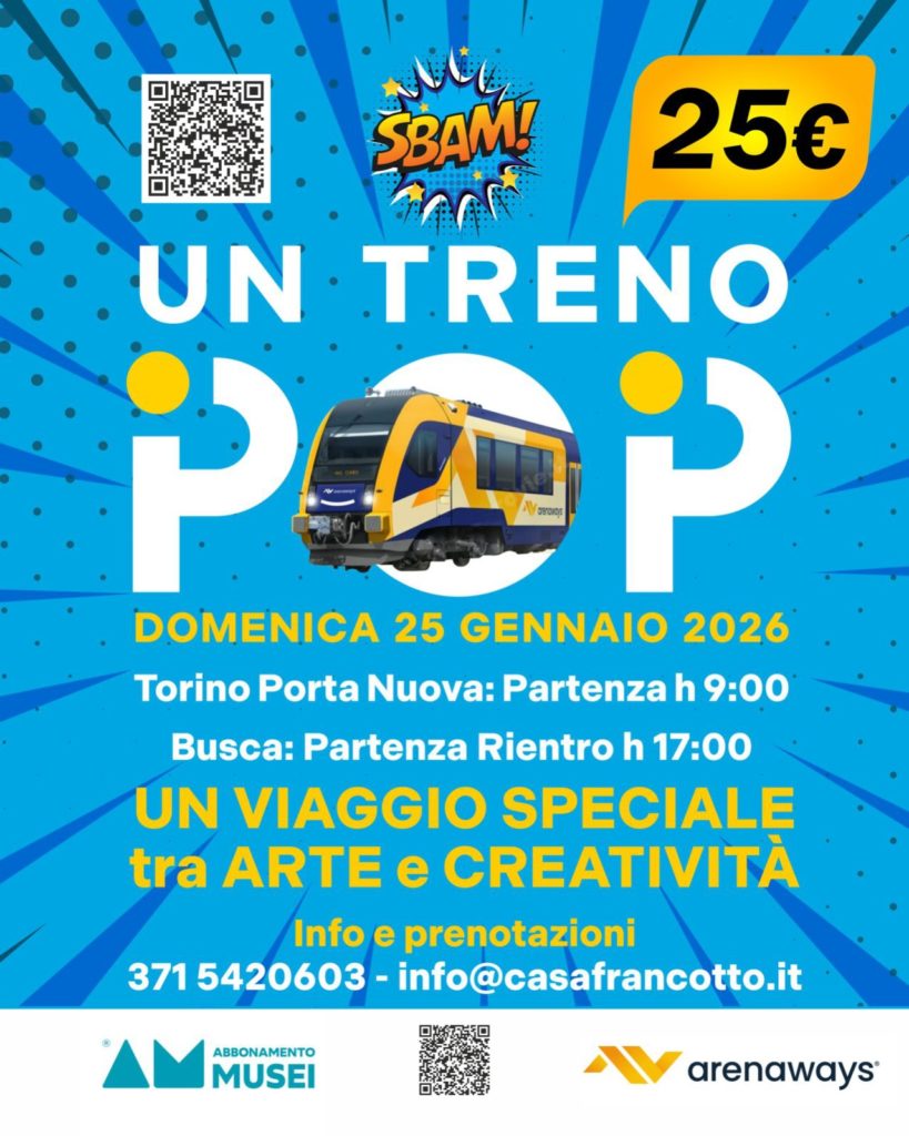 🎟️ 12€ a partecipante (NON sono previste altre riduzioni per questioni organizzative) 🆓 under 16 ⏱️ ritrovo previsto in Casa Francottoalle 10 | 15 ⚠️ 𝐏𝐫𝐞𝐧𝐨𝐭𝐚𝐳𝐢𝐨𝐧𝐞 𝐨𝐛𝐛𝐥𝐢𝐠𝐚𝐭𝐨𝐫𝐢𝐚📞 371 542 0603📧 info@casafrancotto.it🫶 scrivici per avere ulteriori dettagli 🎨 SBAM! Un percorso nella Pop Art📅 Dall’11 ottobre 2025 al 22 febbraio 2026📌 Casa Francotto, Busca | Palazzo […]
